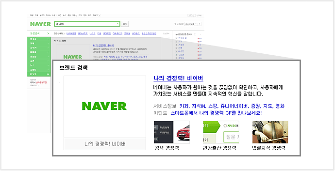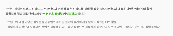 ÅëÇÕ°Ë»ö °á°ú ÆäÀÌÁö ÃÖ»ó´Ü ¿µ¿ª ´Ü, »ç¿ëÀÚÀÇ °Ë»ö Àǵµ°¡ ´Þ¶óÁ³À» °æ¿ì, ºê·£µå °Ë»ö »ó´Ü¿¡ ¾ðÁ¦µçÁö ÄÁÅÙÃ÷ °Ë»öÀÌ ³ëÃâ, ÀÌ¿¡ µû¸¥ ±¤°í ÁýÇà Áß´Ü °¡´É |