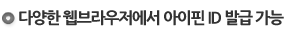 - º»ÀÎÈ®Àαâ°üº° ¾ÆÀÌÇÉ ¹ß±Þ ¹× ÀÌ¿ëÀýÂ÷ ÅëÀÏ - ¾ÆÀÌÇÉ ¹ß±Þ±â°ü ÀÚµ¿½Äº° ±â´ÉÃß°¡ (¹ß±Þ±â°üÀ» ¾Ï±âÇØ¾ßÇÏ´Â ºÒÆíÇÔ ÇØ¼Ò) - ¿¬°èÁ¤º¸(CI) Á¦°øÀ» ÅëÇÑ ¿Â/¿ÀÇÁ¶óÀÎ ¿¬°è ¹× »ç¾÷ÀÚ°£ Á¦ÈÞ¼ºñ½º °¡´É |
