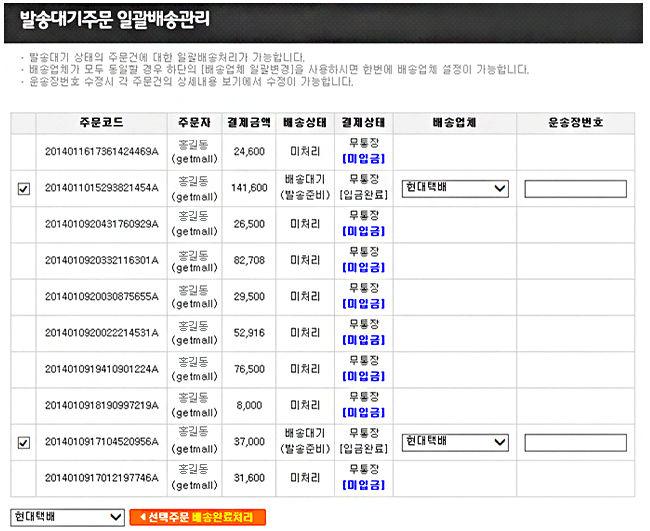 ÁÖ¹®¸®½ºÆ®¿¡¼ ÀÔ±ÝÈ®ÀΰÇÀ» ±¸ºÐÇÏ¿© ÀϰýÀÔ±ÝÈ®ÀÎ ¹× Àϰý ¹è¼Û󸮰¡ °¡´ÉÇÏ¸ç º¹¼ö ¼ÛÀå¹øÈ£ ÀÔ·Â󸮰¡ °¡´ÉÇÕ´Ï´Ù. |