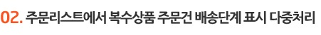 º¹¼ö»óǰ ÁÖ¹®°ÇÀÇ °æ¿ì ÁÖ¹®¸®½ºÆ®È¸é¿¡¼ ¹è¼Û´Ü°è Ç¥½Ã ´ÙÁßó¸®ÇÏ¿© ÁÖ¹®°í°´¿¡°Ô ¹è¼Ûó¸®ÀÇ ½Å·Ú¼ºÀ» ³ôÇôÁÝ´Ï´Ù. |