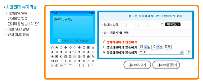 Àüüȸ¿ø/°³º°È¸¿ø/µî±Þº° ¸ÞÀÏ ¹× SMS ¹ß¼Û ±â´É