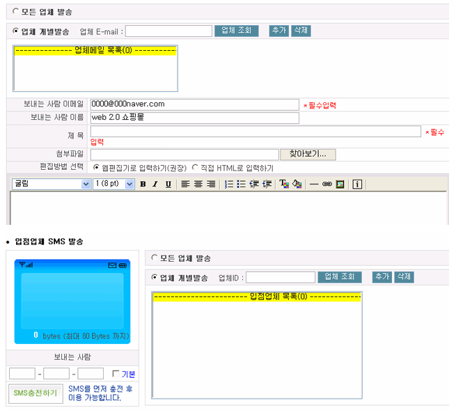 ÀÔÁ¡¾÷ü¿¡ ¸ÞÀÏ ¹× sms¹ß¼Û ±â´É