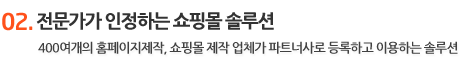 ±â¾÷ÀÇ Æ¯¼º¿¡ ¸Â´Â ¼îÇθô ±¸Ãà, e-BIZ ¸ðµ¨À» ±¸ÇöÇÒ °æ¿ì ÄÁ¼³ÆÃ, ±¸Çö, ¿î¿µ¿¡ ´ëÇÑ ÆÄÆ®³Ê Á¦ÈÞ¸¦ ¸Î°í °æÁ¦ÀûÀÎ ½Ã½ºÅÛµµÀÔÀ» µµ¿Í µå¸³´Ï´Ù. |