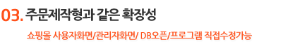 ±âÁ¸ÀÇ È¨ÆäÀÌÁö¿¡ ¼îÇθô ¿¬°è, »õ·Î ¼îÇθôÀ» ±¸Ãà ÈÄ È¨ÆäÀÌÁö Ãß°¡ ±¸Ãà °¡´É. »õ ÆäÀÌÁö »ý¼ºÀÌ ¹«Á¦ÇÑÀÓÀ¸·Î ¼îÇθô ±â´ÉÀ» ÀÌ¿ëÇØµµ ´ëÇü ȨÆäÀÌÁö Á¦ÀÛµµ °¡´ÉÇÕ´Ï´Ù. |