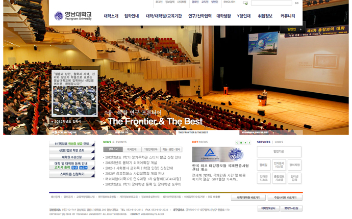 õ¸¶ÀÇ ±â»óÀ¸·Î! ¼¼°èÀÇ Áß½ÉÀ¸·Î! ¿µ³²´ëÇб³ÀÇ UI¸¦ ¸ÞÀÎÄÁ¼ÁÀ¸·ÎÇÏ¿© ¹æ¹®Àڵ鿡°Ô Ä£±ÙÇÏ°Ô ´Ù°¡¼·Á´Â ¿µ³²´ëÇб³ÀÇ À̹ÌÁö¸¦ ºÎ°¢½ÃŰ°í °¢Á¾ Çб³ À¥¼ºñ½º, ¹®¼´Ù¿î·Îµå, °Ë»ö µî ¹æ¹®ÀÚµéÀÌ ÀÚÁÖ Ã£´Â ¸Þ´º¸¦ ½±°í °£´ÜÇÏ°Ô Á¢±ÙÀÌ °¡´ÉÇϵµ·Ï ȸ鼳°è¸¦ ÇÏ¿´À¸¸ç ¿ªµ¿ÀûÀÎ Ç÷¡½Ã¸ð¼ÇÀÇ ±¸Çö°ú ºí·çÄ÷¯°¡ ÁÖ´Â Àþ°íÆÐ±â ÀÖ´Â »ö»óÀÇ Àǹ̸¦ ºñÁÖ¾ó ÄÁ¼Á¿¡ ´ã¾Æ ±Û·Î¹ú ÀÎÀ縦 Ű¿ì´Â ´ëÇÐ! ¿µ³²´ëÇб³ÀÇ À̹ÌÁö¸¦ º¸´Ù Àþ°í ´ÙÀ̳ª¹ÍÇÑ ´ëÇÐÀÇ À̹ÌÁö·Î »õ·Ó°Ô °Åµì³ª´Â°Í¿¡ ÁßÁ¡À» µÎ¾î ¼³°è, ±¸ÇöÇÏ¿´½À´Ï´Ù. |
