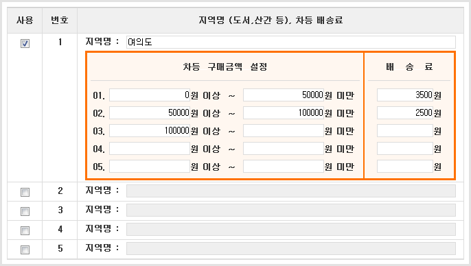 • °ø±Þ ¾÷üº° ¹è¼Û·á Á¶°ÇÀ» ¼³Á¤ÇÒ ¼ö ÀÖ½À´Ï´Ù.
