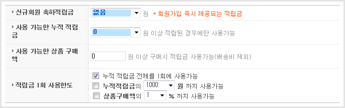 °Ù¸ô ¸Þ´º¾ó °Ù¸ô ¸Þ´º¾ó > »óÁ¡°ü¸® > ¼îÇθô ¿î¿µ ¼³Á¤ > Àû¸³±Ý/ÄíÆù ±â´É¼³Á¤