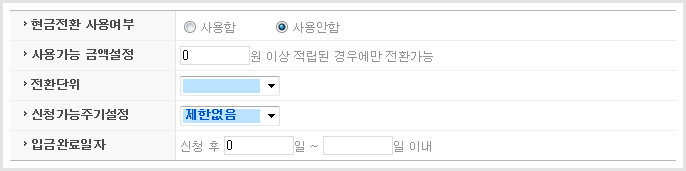 • - Àû¸³µÈ Æ÷ÀÎÆ®ÀÇ Çö±ÝÀüȯ ½Åû »ç¿ë¿©ºÎ¸¦ ¼³Á¤ÇÒ ¼ö ÀÖ½À´Ï´Ù.