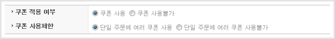 • - »óǰ ±¸¸Å½Ã »ç¿ëÇÒ ¼ö ÀÖ´Â ÇÒÀÎÄíÆùÀ̳ª Àû¸³ÄíÆù ±â´ÉÀÇ »ç¿ëÀ¯¹«¸¦ ¼³Á¤ÇÒ ¼ö ÀÖ½À´Ï´Ù.